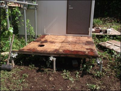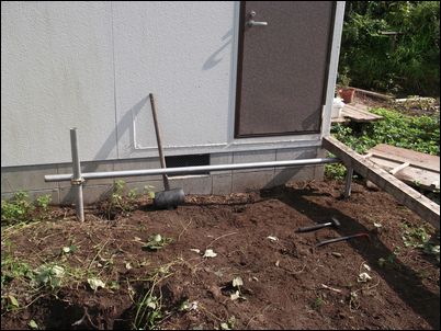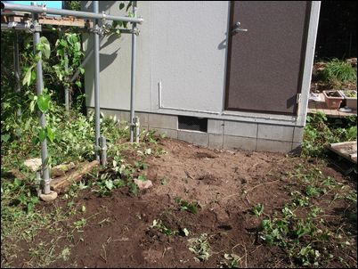 写真の奥から、手洗い場・トイレ・物置の順番で配置し、手前はウッドデッキにする予定♪