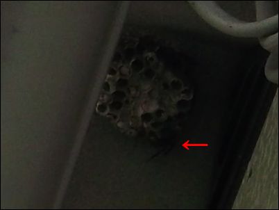 ふと上を見上げると、スズメバチの巣が!