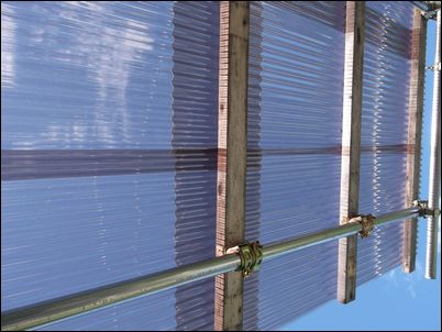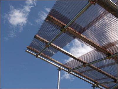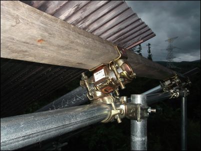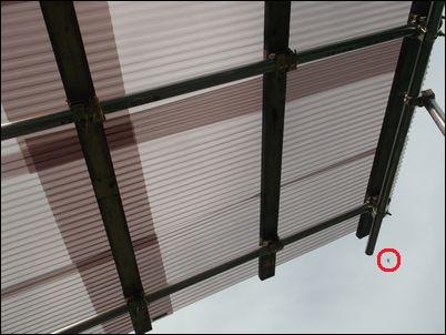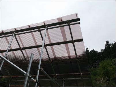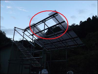 屋根を支える木材は、しっかりと単管パイプについているので、大丈夫だとは思うが…。