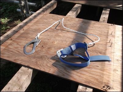 高さは約4メートル…。命綱をしてても恐い…。