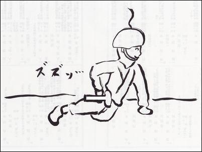 ![]() 覚悟を決め、自衛隊の匍匐前進(ほふくぜんしん)をマネして屋根の上を移動。俺に続けぇぇぇ〜!