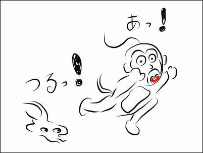 ![]() ハチに刺されて苦しみながら逃げていく猿を、今度は牛糞が滑らせて転倒させ…。