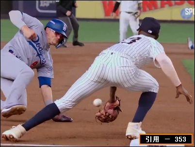 ![]() 続けて、完全にアウトにできたはずの場面で、ショートがサードに悪送球。