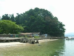 大島の北西に、小さな山がある。 昔、仙台藩主が大島に来たとき、ここで休憩し、お酒を飲んだ。 それで、ここを“ 一杯森 ”と呼ぶようになったという。