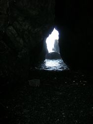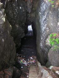 これが、乙姫 岩屋 。昔、大島は、中国と交流があったらしい。大島の近海で、中国の 古銭 が発見されたり、唐の船が漂着したという伝承もある。古老の話によると、浦島太郎と乙姫というのは 建前 で、実際は、日本人と中国人が密会していたらしいとのことだった。