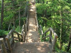 これが、馬の背。昭和三十八年に、コンクリートの橋をかけた。この橋のおかげで、岬まで安全に行けるようになった。