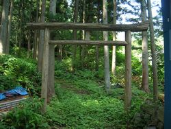 昔、 源義経 の 一行 が平泉に向かう途中、この里で 休憩 したことがあった。 北の方 が、 亀若丸 に 母乳 を飲ませていたとき、この里の子供たちが、「 義経殿だ、義経殿だ! 」と叫んで、北の方の周りを花で飾り、みんなで輪になって亀若丸をあやした。すると、赤ん坊の亀若丸にも 歓迎 されていることが理解できたのか、喜んで子供たちの後を 這い 回った。 その日の夕方、空から、大きな白馬が、黄金の 鞍 を置いた十数匹の馬を引き連れて、義経一行の前に舞い降りた。そして、その白馬は、「 義経殿、われわれと一緒に、栗原寺まで行きましょう 」と言った。義経は、「 わかりました。しかし、その前にするべきことがあります 」と言って、 弁慶 に、「 この里の子供たちに、幸福と 武運 を与えてやってくれ 」と命令し、 白山神社 を 勧請 して 祀ら せた。 その後、その子供たちが立派に成人して里を 繁栄 させたので、いつしか、 里人 たちは、赤ん坊の亀若丸が喜んで這った、この里を、“ 赤這 ”と呼ぶようになったという。 参考『 鳴子町史 上巻 』