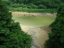 上の写真が、鳴子町史 上巻の、「 …片山地獄を水源とする大深沢が鳴子ダムに出合する… 」という場所。