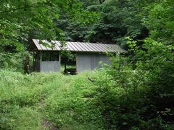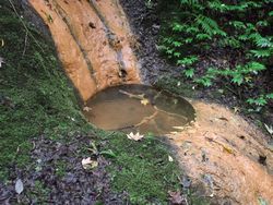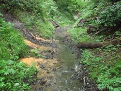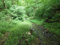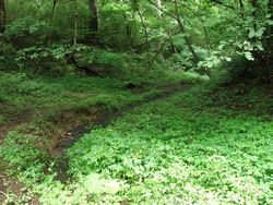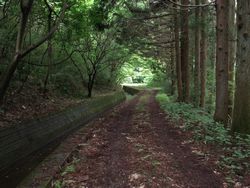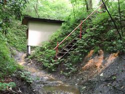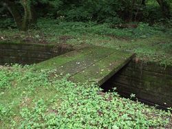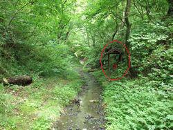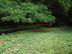 少し広い場所がある。ここに石の橋がある。赤丸がそれ。
