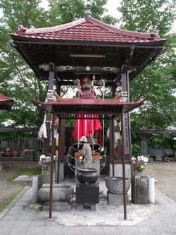 昔、この里に住んでいた夫婦が、 お伊勢参り に行くことになったので、近所の 里人 たちに 事情 を話して、 意気揚々 と旅に出た。ところが、 大豆坂地蔵尊 の前を通ったとき、地蔵尊の裏に一人の貧しい男が 倒れて いた。 その夫婦が、その男に、「 大丈夫 ですか? 」と聞くと、その男は、突然、「 すまないが、あなたの 母乳 を飲ませていただきたい 」と、その妻に頼んだ。この男の 哀れな 姿を見た妻は、「 やれやれ、 不憫 な方じゃ 」と思い、胸に手をあてて、母乳を飲ませようとした。 すると、その病人と思われる男は、「 これはありがたい。でも、気持ちだけで 結構 です。私の 懐 の袋の中に、大金が入っています。あなたの優しい心に 感謝 して、それをさしあげます 」と言って、安心して深い眠りについた。 大金を 譲渡 された夫婦は、「 これは夢ではないのか? 」と驚いたのだが、大豆坂地蔵尊から 授かった ものと思い、ありがたくいただいて帰った。その後、この夫婦は、この大金を 元手 にして 酒造り を 営み 、この里で一番の 長者 になったという。 参考『 三本木町誌 下巻 』
