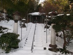 ![]() これが、清水沢不動尊。赤丸が、光門海上人の碑。