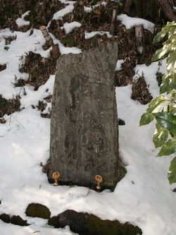 昔、この里に、光門海上人という 行者 がいた。ある日、光門海上人が外出するとき、 「 そうだ、最近、この里で、 頻繁 に 盗賊 が入るらしいから、 用心 のために、 盗難 よけの 結界 をはっておくか 」 と言って、結界をはってから外出した。 しばらくすると、盗賊がやって来て、 上人 の屋敷に 忍び込み 、 様様な ものを 風呂敷 に 詰め込んで 逃げようとしたところ、自分の逃げる方向に、 鐘 があることに気づいた。すると不思議なことに、 無性に 、その鐘を 乱打 したくなり、風呂敷を 背負った まま、 一生懸命 に鐘を乱打した。 すると、その鐘の音を聞いた 里人 たちは、 「 火事だ ! 近くで火事だぞ ! どこだ ! どこだ ! 」 と叫んで、 騒ぎ だした。里人たちが、鐘の鳴る方に行ってみると、ちょうど、盗賊が逃げていくところだった。里人たちは、「それ ! 盗賊だ ! 逃がすな ! 」 と叫びながら 包囲 し、盗賊を 逮捕 した。これを見た里人たちは、上人の盗難よけの結界は 立派 なものだと、ただただ 感心 するばかりであった。 明治 十年ごろ、玉造郡新田村で、頻繁に強盗事件があり、なかなか犯人が逮捕できなかったので、新田村の里人たちは、上人に、 捜査 の協力を 依頼 した。すると、上人は、この里の里人たちを清水沢不動尊の 境内 に集め、犯人逮捕の 祈祷 をかけた紙を細かく切って、 「 今から、この 紙切れ を全員の頭からふりまく ! 紙切れが体に 貼り付いた 者が犯人だ ! 」 と叫んだ。この説明に、里人たちは 動揺 し、声をあげて騒ぎ始めた。そして、上人が紙切れをふりまくと、不思議なことに、ある男の背中に紙切れが貼り付いた。里人たちは、 「 おぉ〜 ! 犯人がいた ! 」 と叫び、さらに、騒ぎ始めた。 その男は 激怒 し、すぐに屋敷に帰って、妻に、 「 あの 野郎 〜 ! おれは、そんなことはやってない ! みんなの前で恥をかかせやがって ! 」 と不満をもらした。すると、妻は、 「 私に良い考えがあります。今夜、 改心 したふりをして、上人を屋敷に 招いて ください 」 と言って、その計画を説明した。何も知らずに、この屋敷を 訪ねて 来た上人は、奥の 座敷 に通された。そして、上人が、この夫婦に 挨拶 をするために頭を下げた瞬間、その男は、 隠し 持っていた短刀で、 「 恥をかかされた 恨み ! 思い知れ ! 」 と叫んで、上人を 刺し 殺した。 その後、新田村の里人たちは、 「 上人には、たいへん 気の毒な ことをしてしまったな … 」 と思い、この里の里人たちとともに、上人の 霊 を 供養 するため、清水沢不動尊の境内に、上人が、 一本歯 の 足駄 を 履いて いる姿を 刻んだ 碑 を建てて、 ねんごろ に 弔った という。