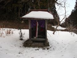 昔、この里に、 由来 が不明な 地蔵 があり、しばしば、 里人 たちは、 「 あの地蔵様は、いつから、あそこにあるのかな ? 」 などと、 噂 していた。そこで、 昭和 二十八年、ある 巫女 に占ってもらったところ、次のような 御託宣 があった。 「 今から四百二十年前、私は、 茂庭家 の 家来 に追われて、この里にある 八幡神社 の 境内 まで逃げて来たのだが、その八幡神社にまで 追手 が来たので、さらに、奥の林の中に逃げた。そして、その林の中で追手に 包囲 されて 絶体絶命 になったとき、私は、ある 妖術 を使って、 竜 のように空を飛び、黒い雲の中に姿を消した。そのとき、私は、三人の 弟子 と、十六人の友人を地上に置いてきてしまったことに気づいた。そのため、再び、地上に降りたのだが、このとき、またしても、追手が私を包囲した。私は、 『 ん 〜 、もはや、これまで … 』 と 諦め 、その場で火を 焚き 、その火の中に飛び込んで 灰 となった。そうとは知らない追手たちは、 鵜の目鷹の目 となって私を 捜し 回っていたのだが、私の十六人の友人は、私の死に気づき、私の姿を 座像 に 刻んで 、弟子の “ 定塚 ” の 立像 と共に 御堂 に 納め 、さらに、千個の小石に、それぞれ 経文 の中の一字を書いて御堂に納めて、私を 供養 した。そのような立派な由来があるにもかかわらず、私の 化身 である地蔵は、今日まで、ゴミ 同然 に 無視 され続けてきた。いつか誰かに告げようと思っていたのだが、今日、おまえたちに告げることができ、こんなに 嬉しい ことはない。私の 命日 に、この地蔵を供養し、また、いつも、この地蔵が 清潔 に保たれるのであれば、おまえたちに、財宝のある場所を教えてやろう。私は、ただの地蔵ではないぞ。 火伏せ の地蔵だ。 」 そのため、いつしか、里人たちは、この地蔵のことを、 “ 火伏地蔵 ” と呼ぶようになったという。