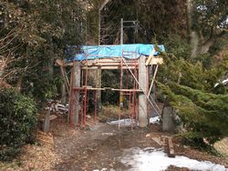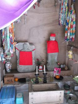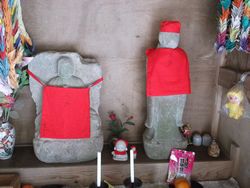 ![]() 左が、火伏地蔵の座像。右が、弟子の定塚の立像。