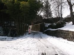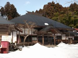 昔、この里に、 “ 月山神社 ” という神社があり、 “ 穴之坊 ” と “ 中之坊 ” という 僧侶 が、この神社を 参詣 する者たちの 道案内 をしていた。ある日、 晴天 だった空が、突然、 黒雲 に 覆われ 、巨大な 竜 が現われた。そして、その竜は、この里の空に 留まり 、その恐ろしい姿で 里人 たちを 威嚇 した。 このとき、この竜を 退治 するため、穴之坊は、 合掌 して 呪文 を 唱え 、持っていた 錫杖 を 風車 のように右に左に 振りかざして 、 結界 をはった。しばらくしてから、この竜は、穴之坊に襲いかかったのだが、この結界が 強力 だったため、みるみるうちに体を 刻み 落とされ、ついに、その姿を消した。 その後、 天正 年間に、 “ 卓山 ” という僧侶が、この里の、ある 谷 に寺を建てるとき、偶然、里人たちから、その話を聞いた。すると、卓山和尚は、 「 ん 〜 、昔、そんなことがあったのか。世にも 珍しい 、 尊い 話である 」 と言って、その寺の名を、 “ 龍谷寺 ” と 命名 したという。