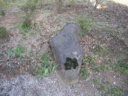 これが、割石。石の半分ぐらいが、埋まってしまっている。 多賀城市史に載っている写真と比較すると、その違いがわかる。 現在では、どこがどう割れているのかもわからない。